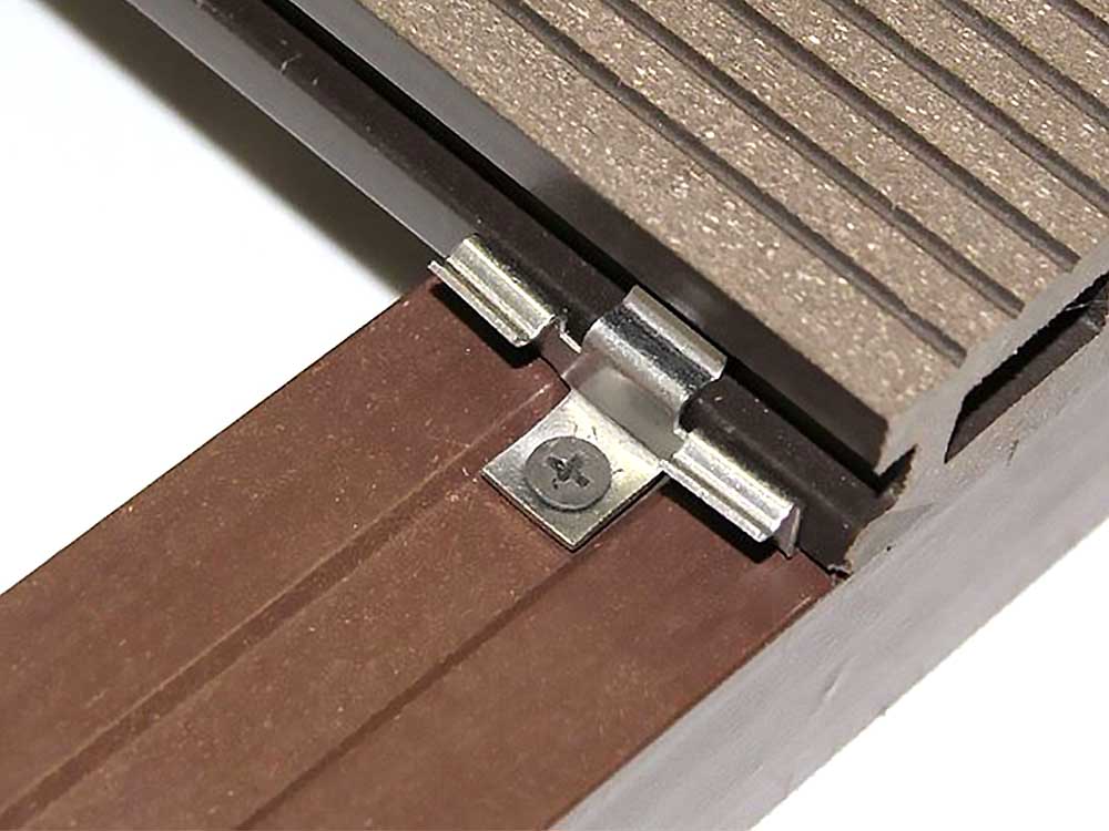 - имеют специальную форму, повторяющую профиль ДПК-доски;